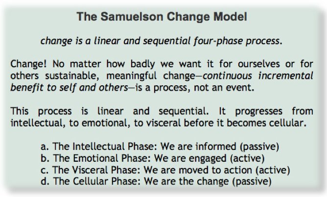 In addition to understanding the dynamics of organizational culture and individual change, research shows a direct correlation between desired outcomes and degree of individual tailoring. The more the individual feels that the program is speaking to him or her, the more vested they become in the process. It the old story of which news bulletin grabs and holds your attention, more: