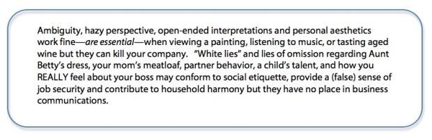 What follows is the introduction to a four-part essay on corporate communication. This section introduces the concepts of “secure-accept-respect” and “no-oblique-speak.” These themes will be presented in detail in Part I and appear throughout the essay. While the basic information deals with all levels of human interaction, the focus is on the communication concerns of fast-paced, early stage, entrepreneurial and intrapreneurial ventures.
