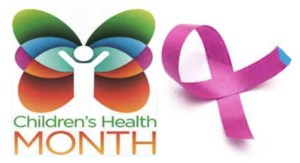 The very important and ubiquitous pink ribbon (with a touch of blue for my fellow male breast cancer survivors/thrivors) triumphs in October, however, it hushes and casts an elegant but huge shadow on the equally important fact that October is, also, Children’s Health Month.