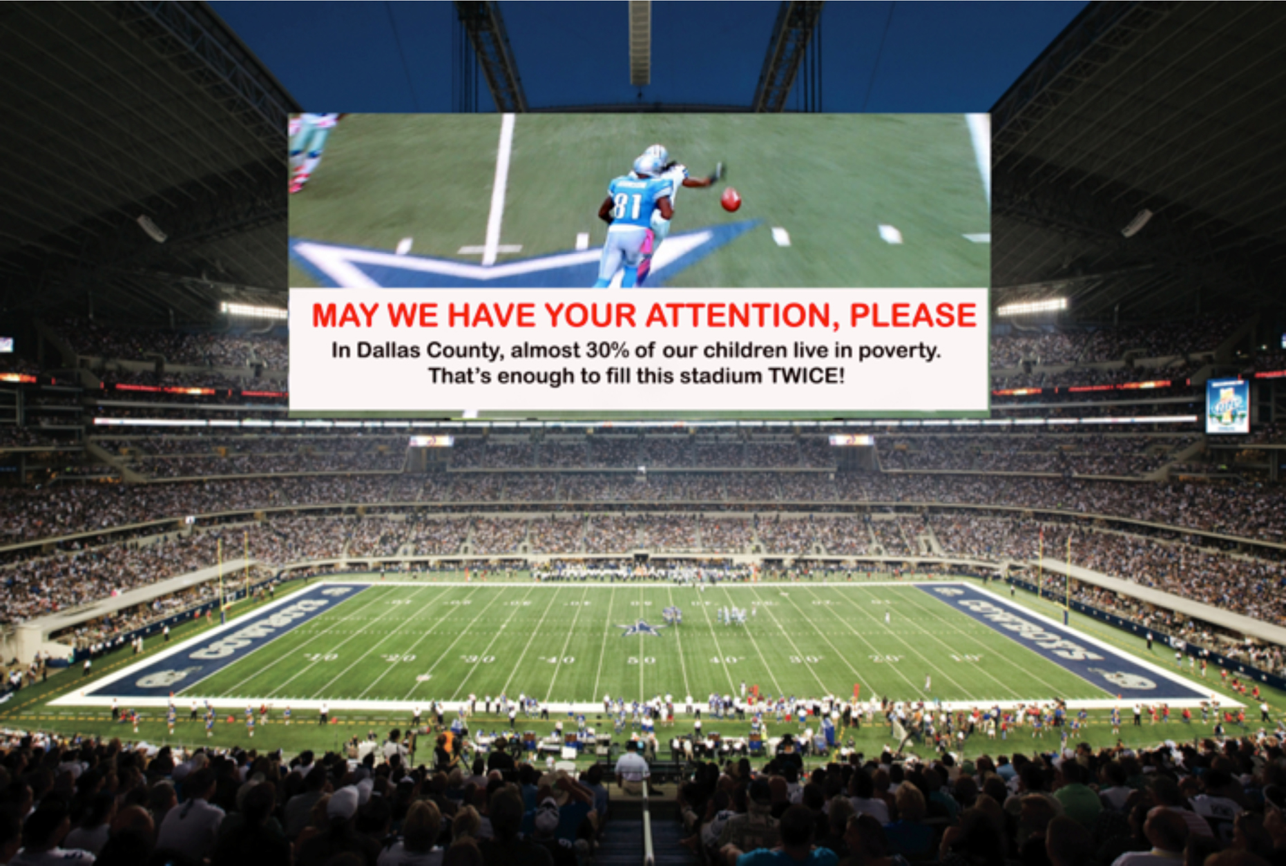 It’s no secret that despite excellent medical facilities and isolated pockets of exemplary social accomplishment, the health of our kids isn’t good; it’s bad, and it’s getting worse. In Dallas County, almost 30% live in poverty…enough children to more than fill Cowboy Stadium TWICE! And, here’s a shocking fact: In this day and age, you could completely fill the stadium with the number of kids in this community who go to bed each night malnourished and hungry. More than a quarter of a million of these kids are on Medicaid, and 18% have no health insurance at all. Also, of growing concern and economic burden is the fact that, in the absence of having a primary care physician, unnecessary emergency room visits are on the rise; Children’s Medical Center of Dallas alone, had over 135,000 ED visits last year; many of those, unnecessary. Your community isn’t much different; just look around.